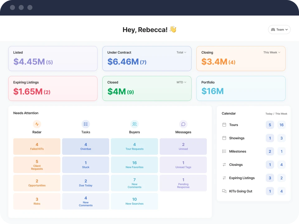 Mosaik reads patterns across client behavior to surface what matters: things like increasing interest, potential trade-up, cold feet, vendor issues, and shifting search activity. You get early alerts so you can act before opportunities fade or risks grow.
